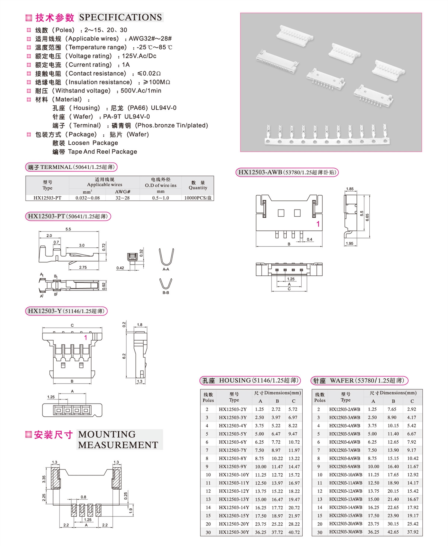 潘集HX12503-(1.25超薄 SMT/51146、53780)- 贴片式连接器(1.25mm)